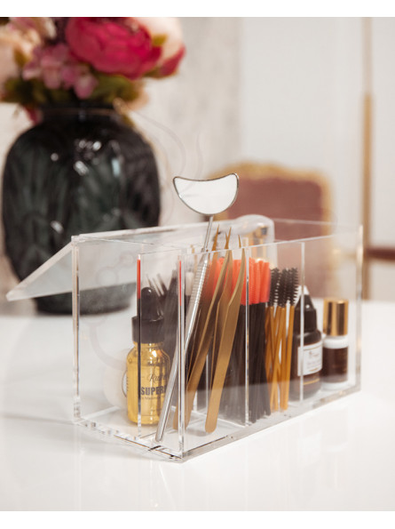 Cet outil est parfait pour trier vos instruments et vos consommables tels que vos pinces à extensions de cils, vos bases, vos mousses nettoyantes, les goupillons, micro-brosses et bien d'autres produits utiles dans le protocole d'extension de cils, de rehaussement de cils ou de brow lift.